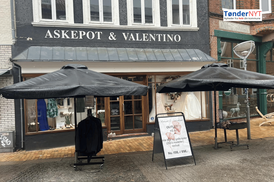 Det var en noget rystet og vred indehaver af Askepot og Valentino på gågaden i Tønder, som ser en stor hund tirsdag formiddag stå og lette ben op af deres kjoler de havde stående på gågaden