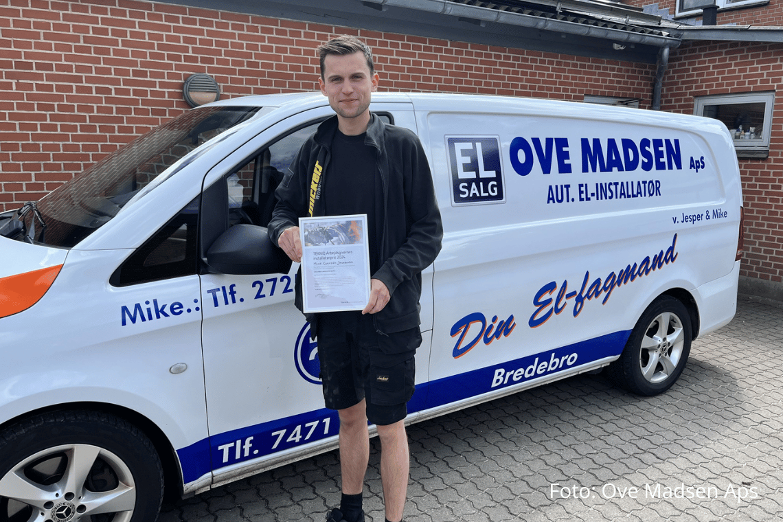 Det sker efter at Mike bestod sin installatøruddannelse med de bedste resultater, at han også blev tildelt TEKNIQ Arbejdsgivernes Installatør Pris 2024 for det bedste eksamensgennemsnit til El-installatører på erhvervsakademi Dania.