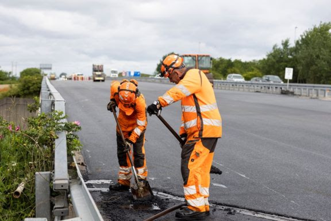 Arbejdet indebærer blandt andet etablering af nyt slidlag og afstribning samt opsætning af autoværn og lysanlæg.