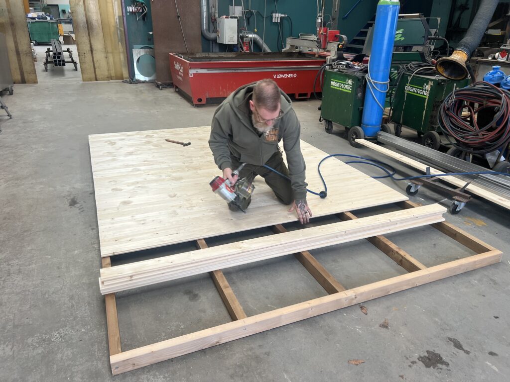 Når hytterne er bygget skal de males og ABTEK laver et stel som sættes under så hytterne kan transporteres