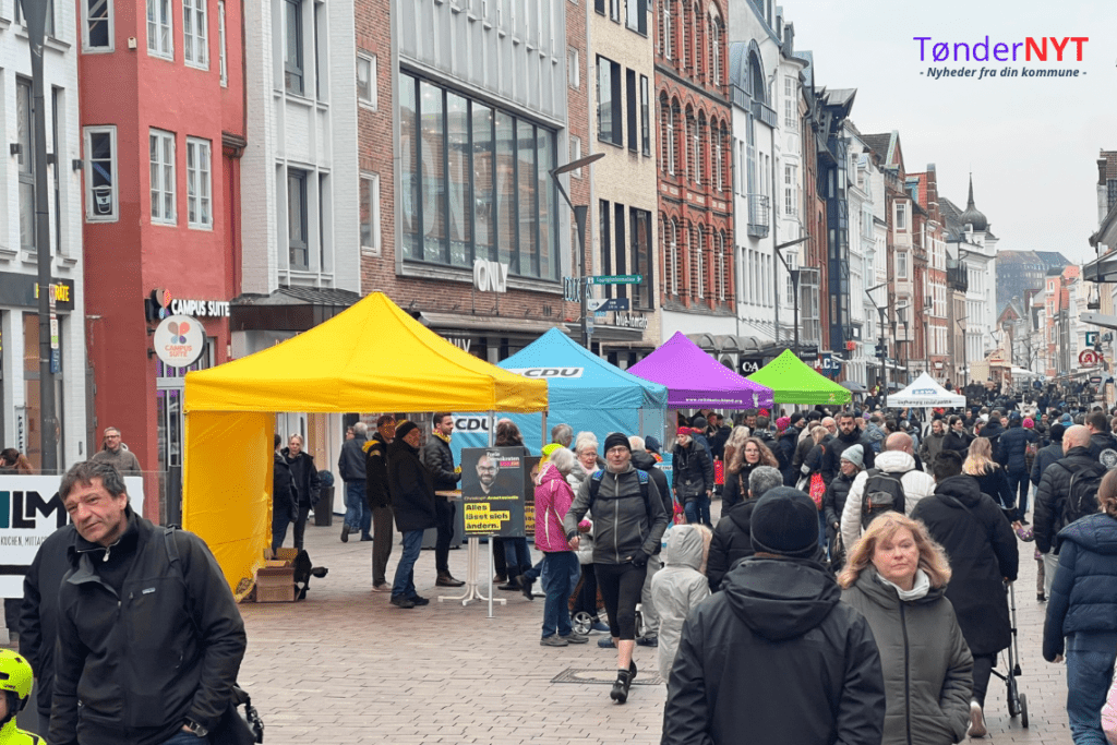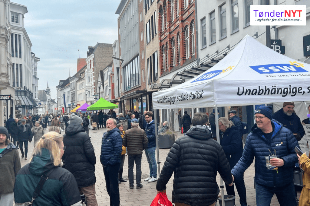 Blandt disse er det danske mindretals parti i Tyskland SSW, som også er blandt partierne, der har stillet sig op på gågaden i Flensburg.