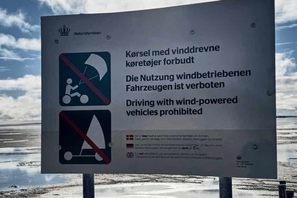 Indtil der er fundet en løsning, er strandsejlads på Sønderstrand sat på pause. De nye skilte betyder, at det i øjeblikket er forbudt at køre med vinddrevne køretøjer på stranden.