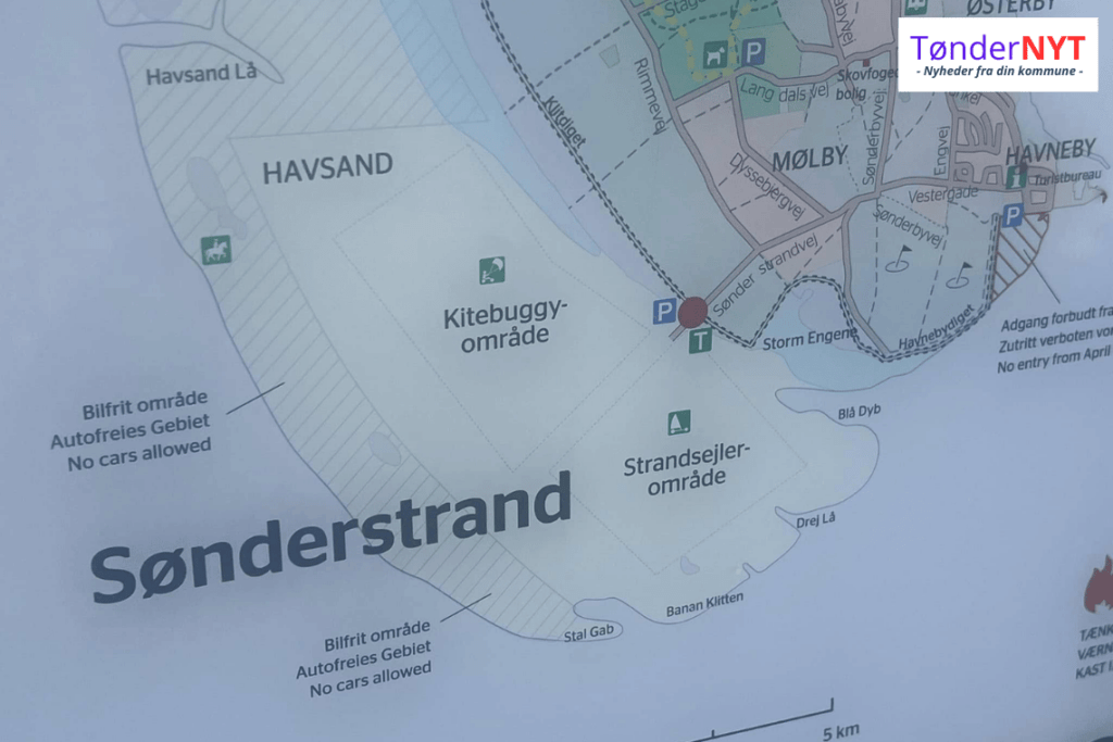 Gæster, der i øjeblikket besøger Sønderstrand, kan opleve forvirring på grund af modstridende skiltning vedrørende strandsejlads. Ved parkeringspladsen ved vejen, der går ned til Sønderstrand, findes et velkomstskilt, der angiver områder, hvor strandsejlere og Kitebuggy er tilladt, mens et nyere skilt ved nedkørslen tydeligt forbyder kørsel med vinddrevne køretøjer.