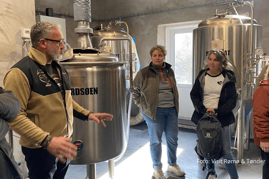 Tilbage på Tønnisgård blev der serveret den lokale specialitet, en Vadehavshotdog med lammepølser fra Rømø Slagteren, og der var også mulighed for at smage friske østers – en ægte smagsoplevelse fra marsken. Turen fortsatte til Brinksgaard/Marskdestilleriet, hvor ginnens hemmeligheder blev afsløret under en rundvisning i destilleriet, naturligvis efterfulgt af en smagning af deres prisvindende gin, akvavit og rom samt den lokale likør ‘My Hero’ med brombær.