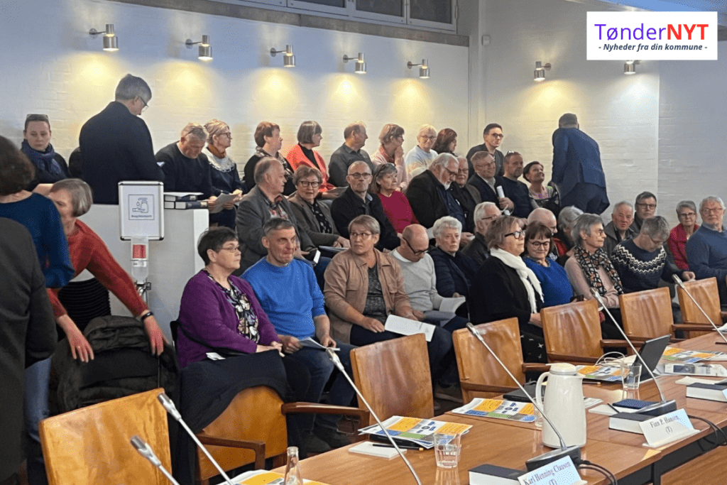Månedens byrådsmøde i Tønder oplevede i dag en usædvanlig stor tilslutning fra offentligheden. Så mange borgere var mødt op, at det blev nødvendigt at hente ekstra stole ind i byrådssalen. Det anslås, at omkring 75 tilhørere var til stede under mødet.