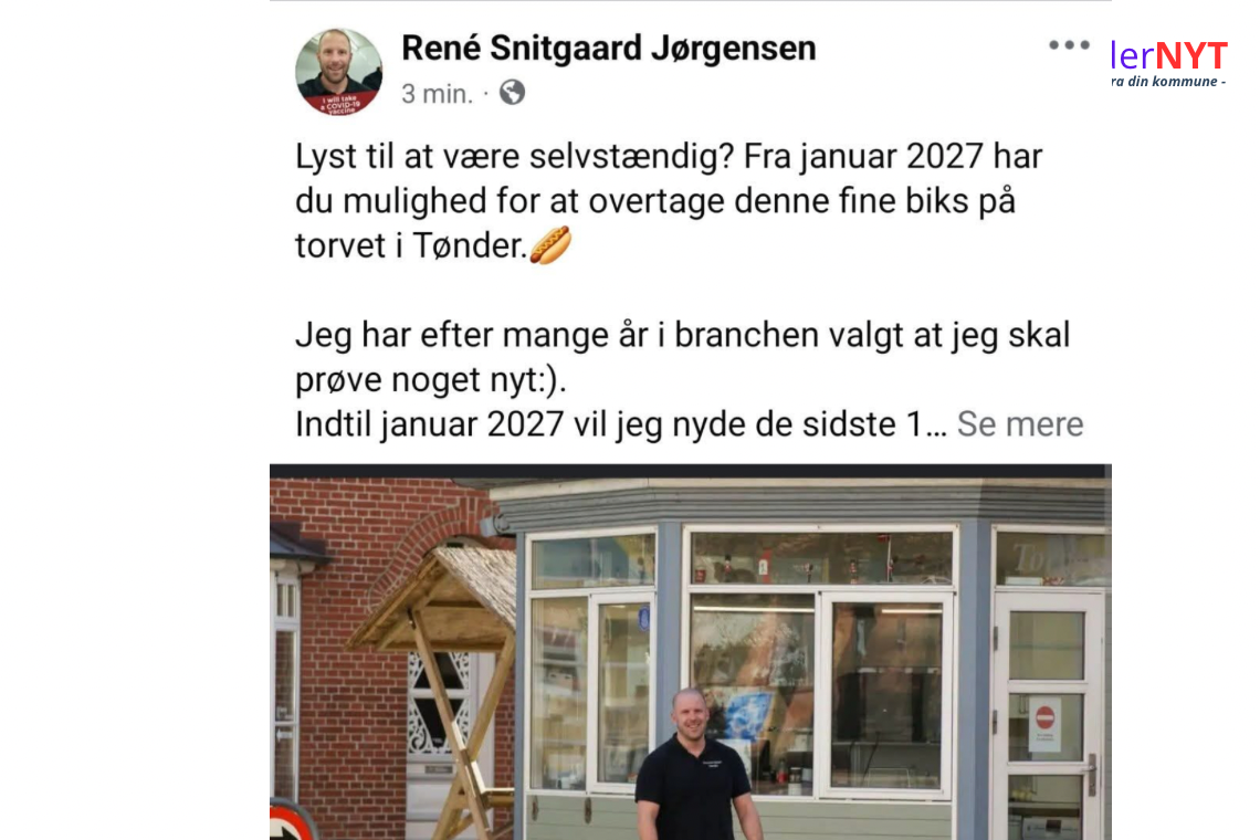I sit opslag skrev René Snitgaard Jørgensen: “Lyst til at være selvstændig? Fra januar 2027 har du mulighed for at overtage denne fine biks på torvet i Tønder. Jeg har efter mange år i branchen valgt, at jeg skal prøve noget nyt :). Indtil januar 2027 vil jeg nyde de sidste 1,5 år på torvet.”