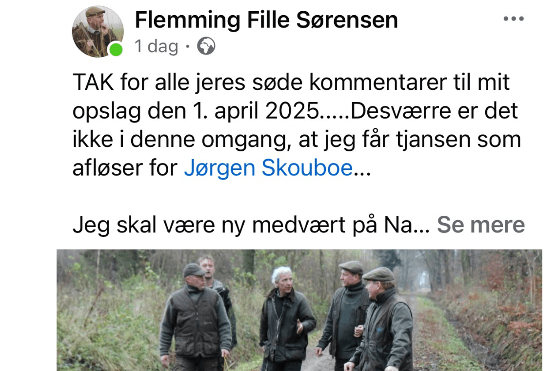 Onsdag afslørede Flemming Fille Sørensen dog, at opslaget var en aprilsnar. Han takkede for de positive kommentarer og bekræftede, at han ikke skulle afløse Jørgen Skouboe.