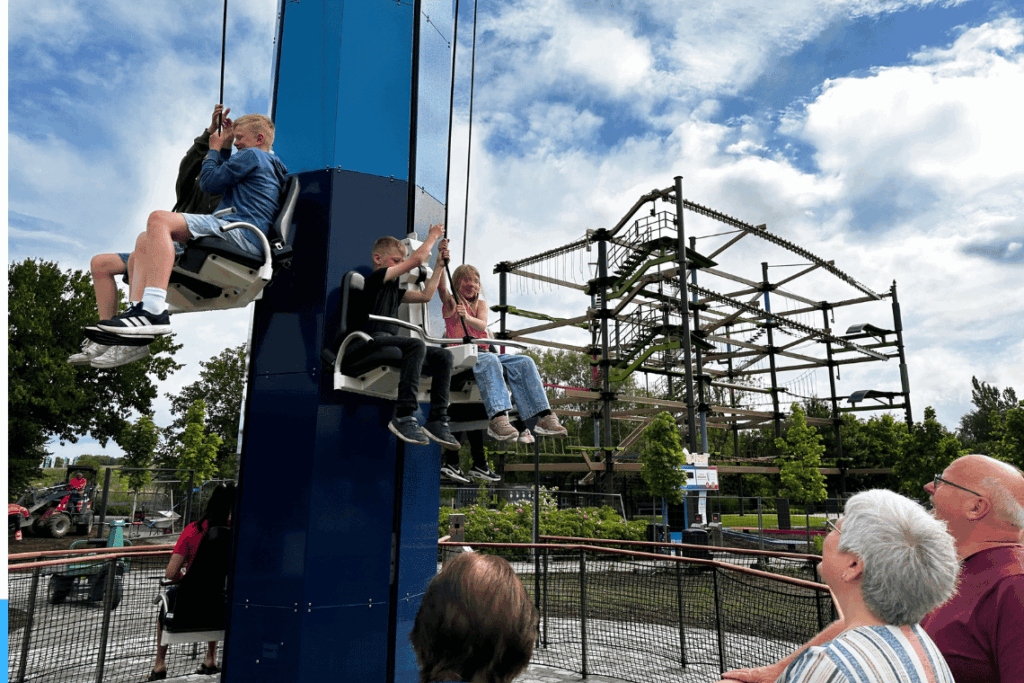 Lige ved siden af åbner Gravity Tower – en attraktion, hvor gæsterne i makkerpar trækker sig op i højden ved hjælp af reb. Når toppen nås, venter der en spektakulær udsigt over parken og naturen på Als. Herefter styrer man selv den langsomme, snurrende nedtur – en oplevelse, der kombinerer kontrol med spænding og læring.