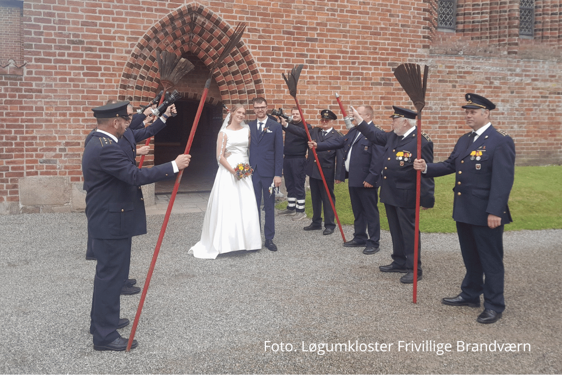 Der var ild i hjerterne – men ingen røg i kirkerummet, da Løgumkloster Kirke lørdag dannede rammen om et bryllup ud over det sædvanlige. Det var nemlig én af de lokale helte fra Løgumkloster Frivillige Brandværn, Christian Thomsen, som sagde ja til sin udkårne, Liselotte.
