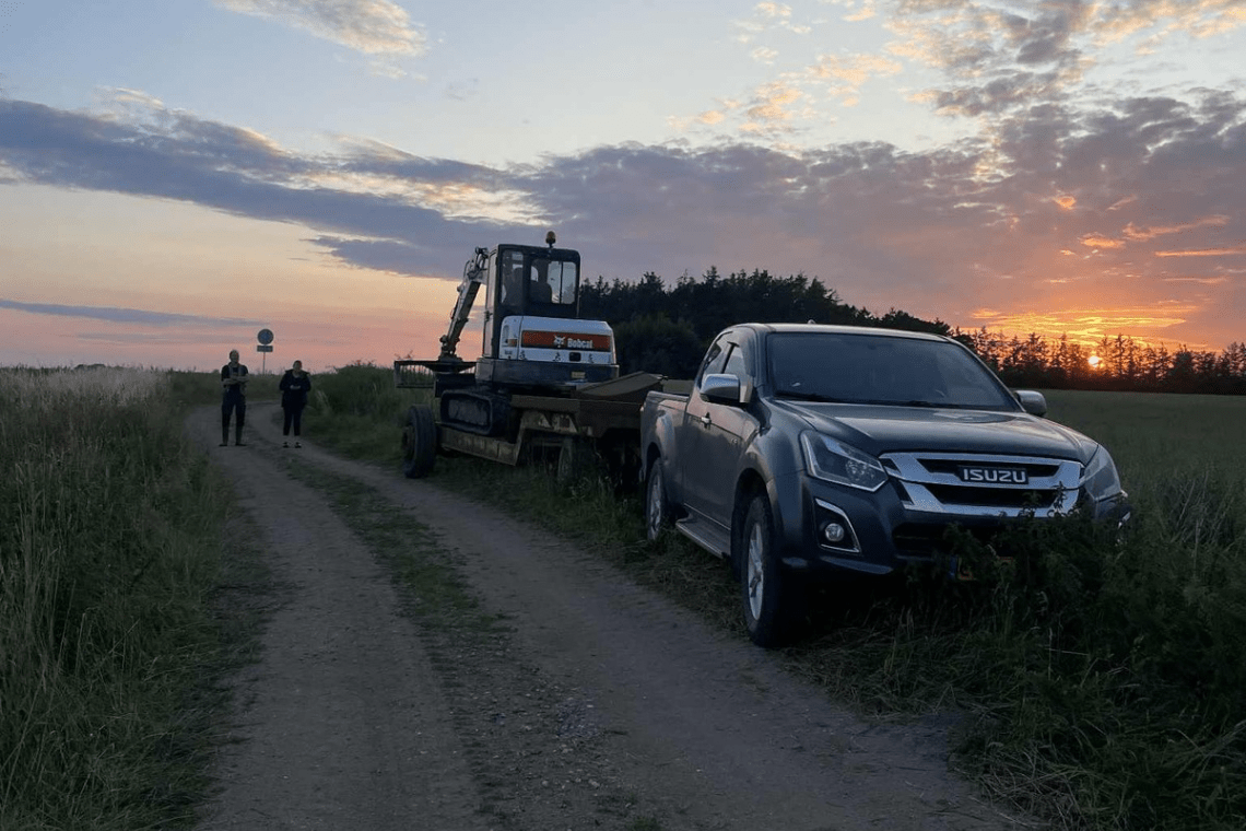 Hans Henrik Pørksen, som er landmand, hjalp med at hejse føllet op og placere det, så kommunen nu kan tage sig af resten via DAKA. Pørksen havde taget sin Bobcat med så de i fællesskab kunne få bjerget det døde dyr fra bækken.