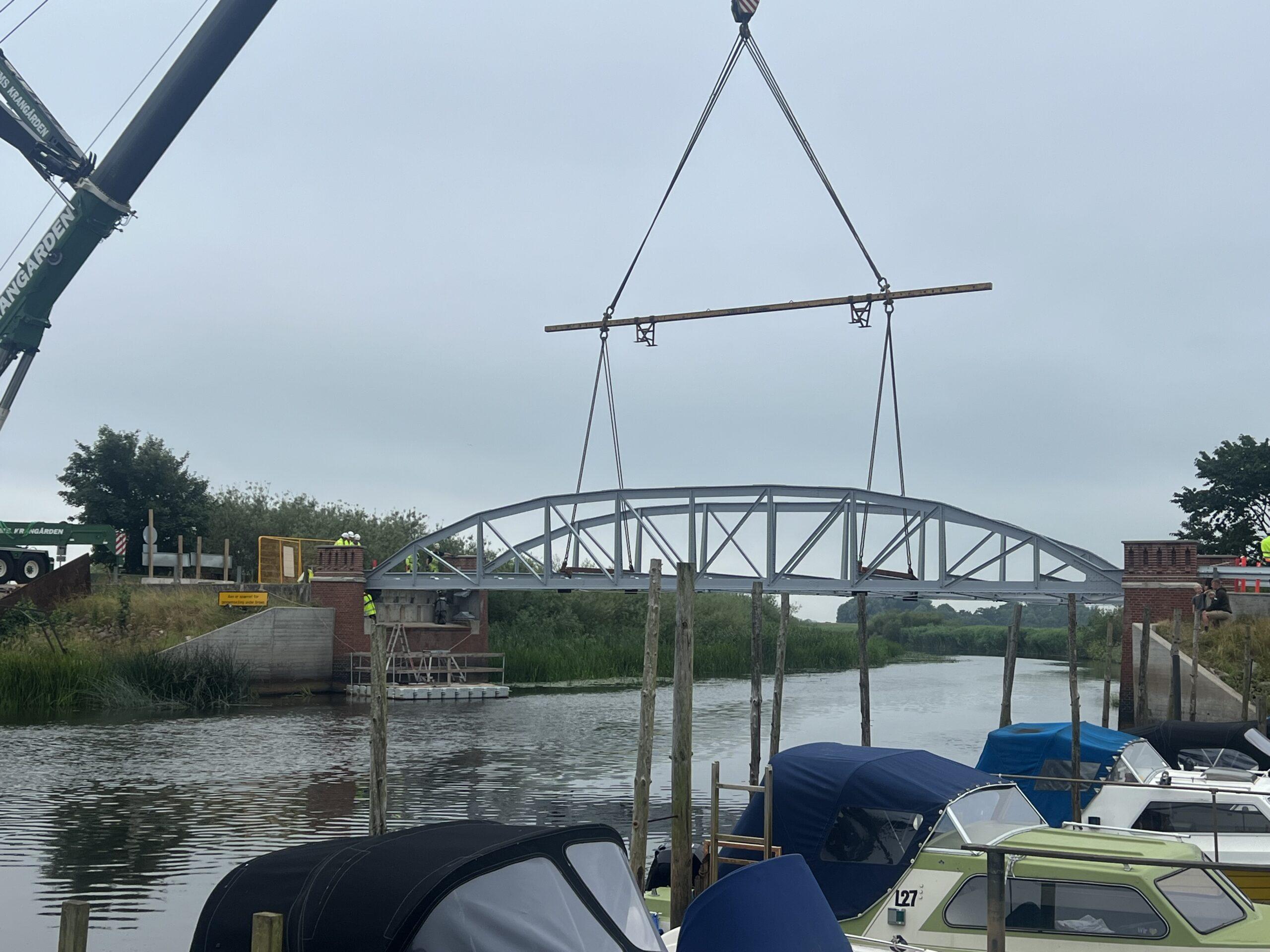 Arbejdet med renoveringen af broen ved Lægan er ved at nå sin afslutning. Den renoverede bro er nu næsten helt på plads – kun de sidste tilpasninger mangler, før broen kan sænkes ned og fastgøres endeligt.