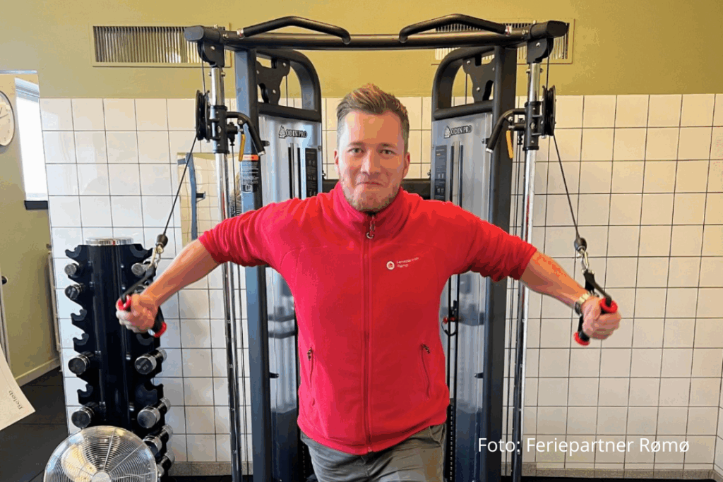 Selvom fitnessrummet endnu ikke er helt klar til offentlig brug, har Feriepartner Rømøs chef, Martin, allerede testet udstyret. Og det var ikke for børn.