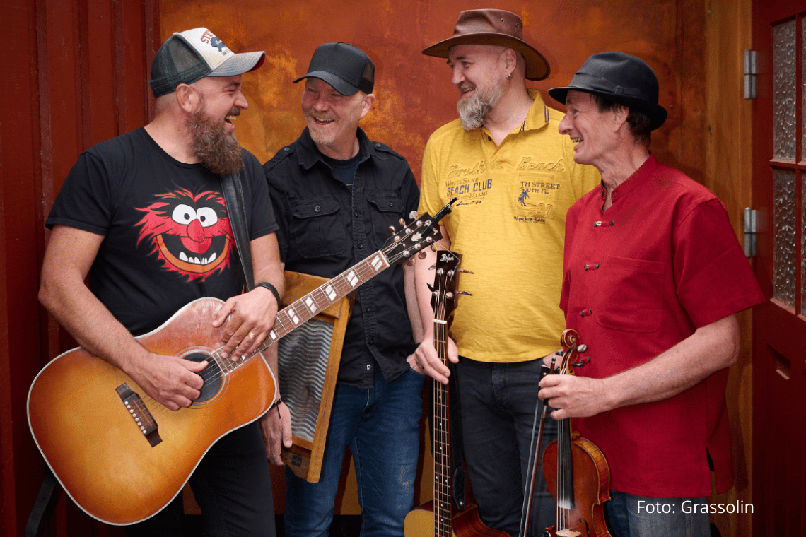 Lørdag aften bliver der spilleglæde og fællessang, når Grassolin leverer Gasolin-klassikere i råsvingende bluegrass-versioner.