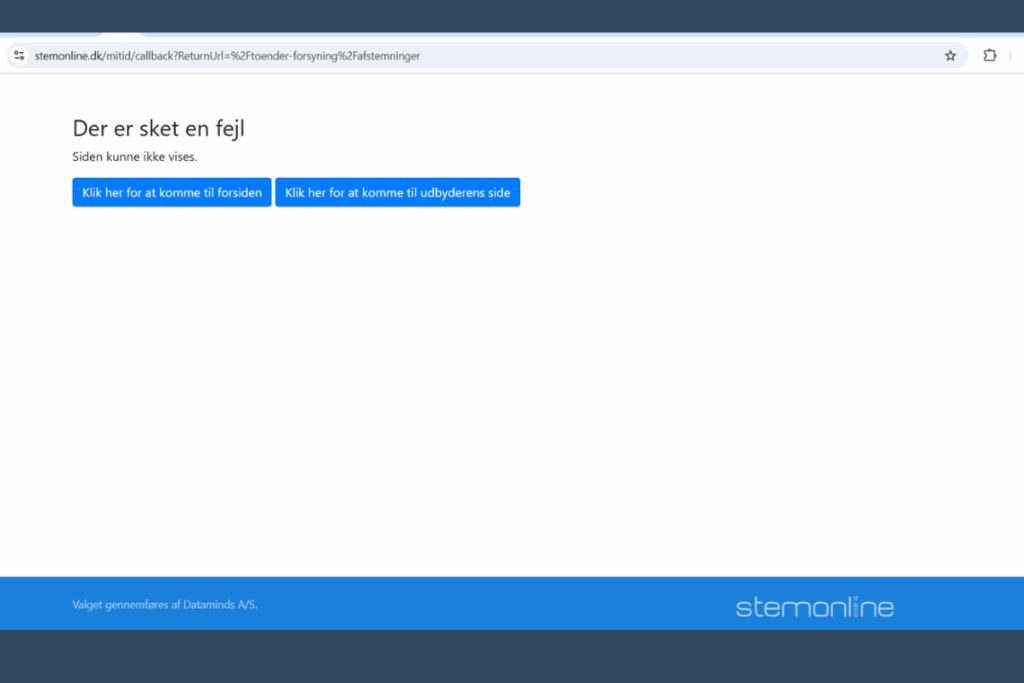Da redaktionen forsøgte at logge ind på afstemningslinket virker afstemingsiden ikke lørdag middag, idet vi kan derved ikke afgive vores stemme for den enhed vi har, som er stemmeberettigede.