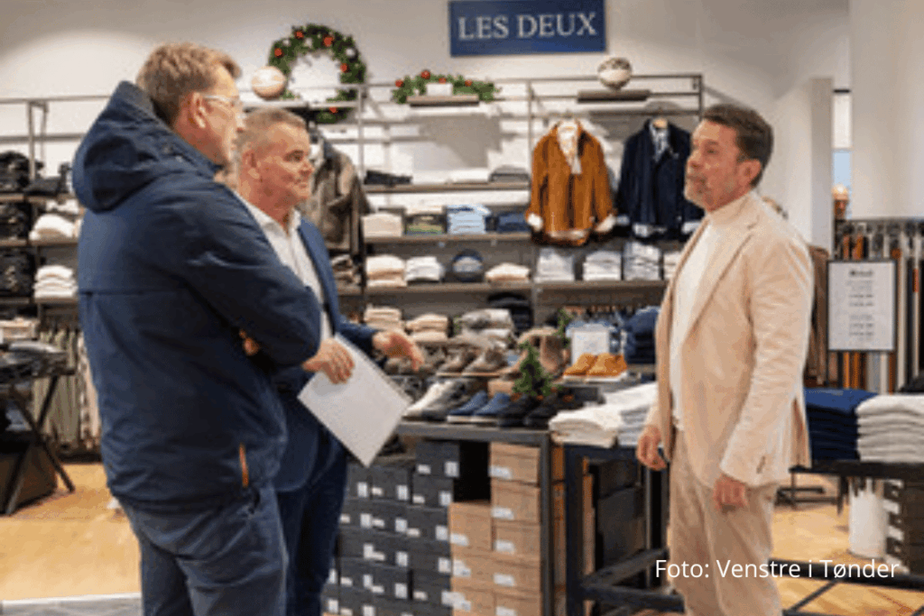 I den forbindelse præsenterede Martin Iversen initiativet “SAMMEN”, der skal imødegå butiksdøden og skabe mere samarbejde på tværs af byens aktører. Undervejs hilste han på Frank Hoffmann fra MR. Hoff og Anders Jacobsen fra Møbelhuset, som delte deres perspektiver på at drive detailhandel i Tønder.